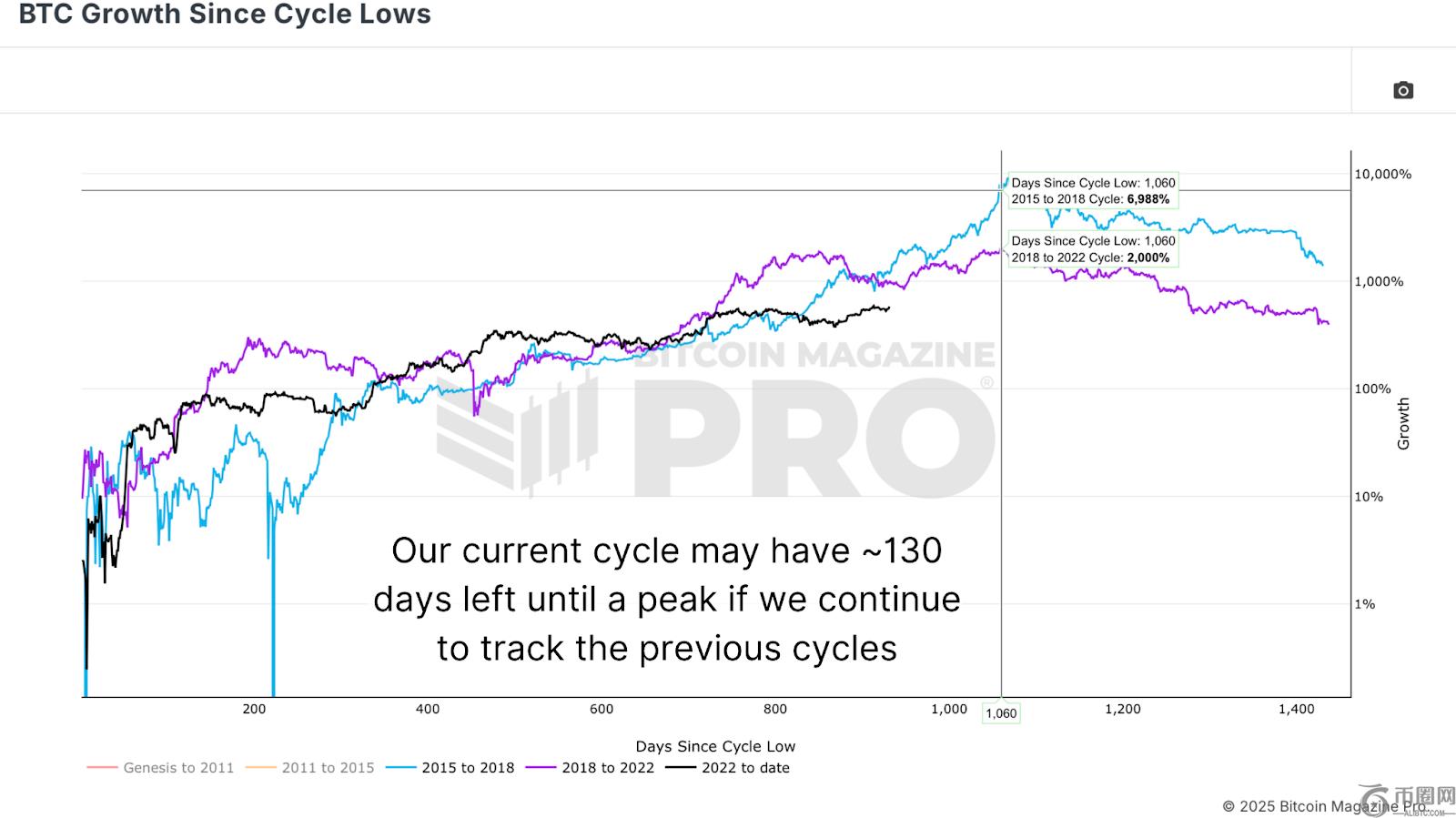 图 3:根据前几个周期的峰值速度,本周期还远未结束。