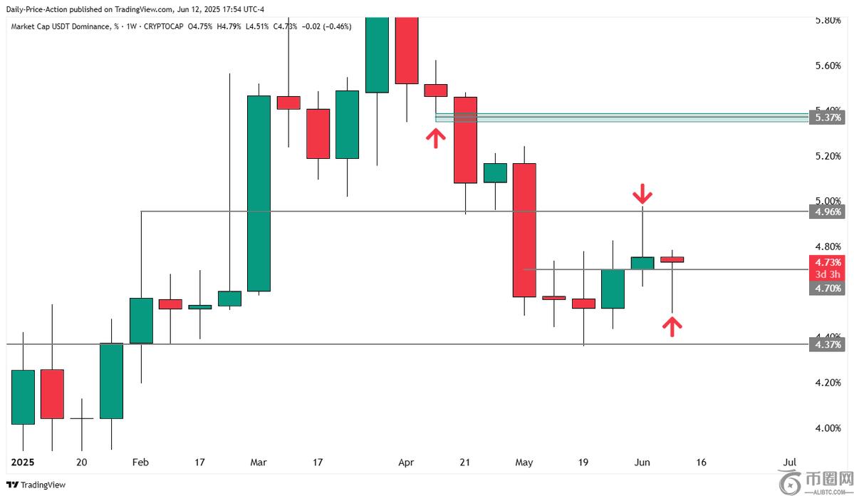同时,截至撰写本文时,USDT.D 的比例为 4.79%。