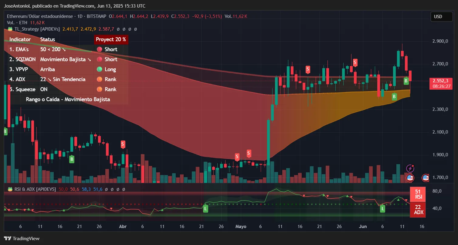 与比特币相比,第二大加密货币的技术指标呈现出更为悲观的前景。RSI 为 50.6,ADX 为 22,表明看涨反弹目前非常非常**,长期看跌趋势仍在延续,以太坊显示出更强的下行方向性。目前,以太坊价格徘徊在 200 日均线(2,473 美元)附近,并在抛售期间跌破该水平。50 日均线位于 2,417 美元,跌破该水平将预示着更显著的趋势转变。