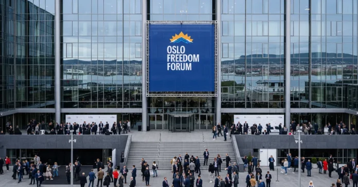 (Uyghur activist Rushan Abbas speaks during the Freedom Tech track at the 2025 Oslo Freedom Forum.)