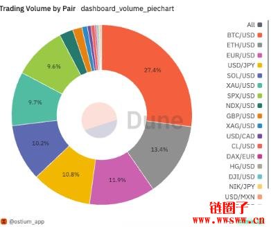 根据 Dune 的数据,Ostium 累计的交易量为 57.4 亿美元,用户有 7,050 名,总交易费用达 229 万美元。