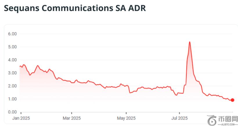 Sequans Communications 是一家法国半导体公司,于 2011 年在纽约证券交易所上市,股票代码为 SQNS。2025年7月初,Sequans Communications公司股价在经历了一年的稳步下跌后徘徊在1.45美元,7月10日该公司宣布**购买比特币引发股价上涨,随后几天股价一度飙升至5.39美元,但这股上涨势头很快消退,8月初已回落至1.25美元。