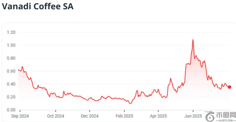 6月29日该公司宣布启动比特币储备计划,第二天其股价就飙升至 1.09 欧元,当月收盘价上涨逾 300%。然而截至2025年8月29日(星期五)交易时段中,Vanadi Coffee股价已回落至35欧分,虽然今年迄今其股价仍上涨95.6%,但较2024年同期下跌44%。