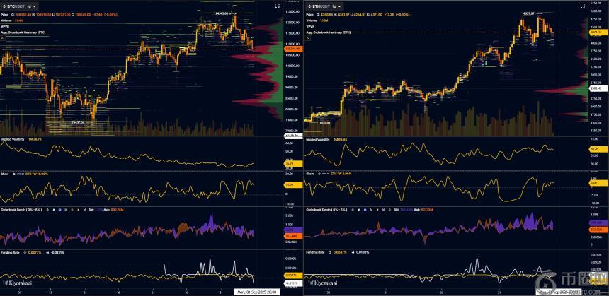 此外,今年除了SOL(得益于新数字资产国债的不断涌现),其他加密资产可能难以实现爆发性上涨。以下是一些图表分析,观察其中的倾斜度(高倾斜度=看跌期权比看涨期权更贵=恐慌情绪浓厚)。