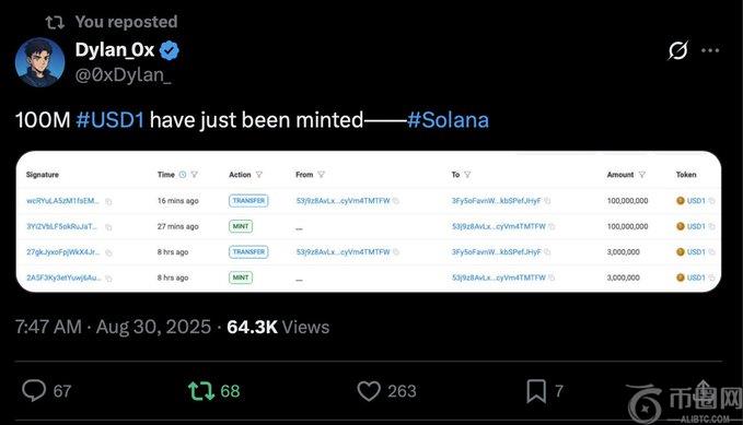 与此同时,就在你阅读这篇文章的时候,World Liberty 已经铸造了数亿美元的稳定币 USD1。