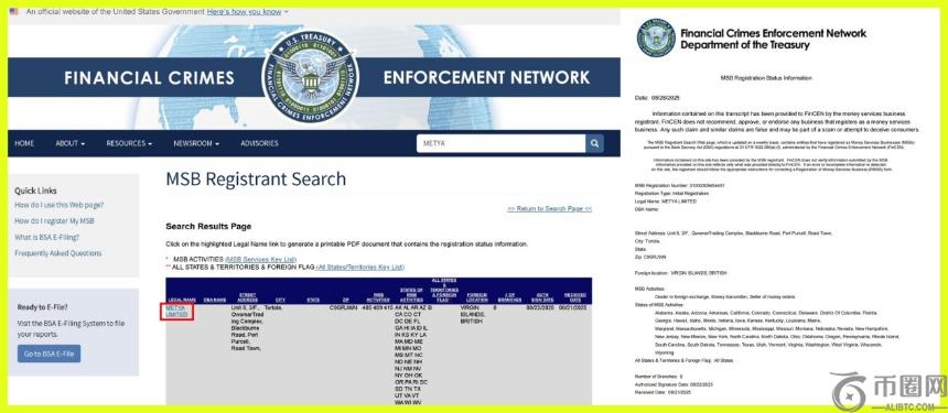 社交支付平台Metya近日宣布,已成功获得美国财政部金融犯罪执法网络(FinCEN)颁发的货币服务业务(MSB)牌照(编号:31000038454401),涵盖资金传输与数字资产兑换等业务类型。