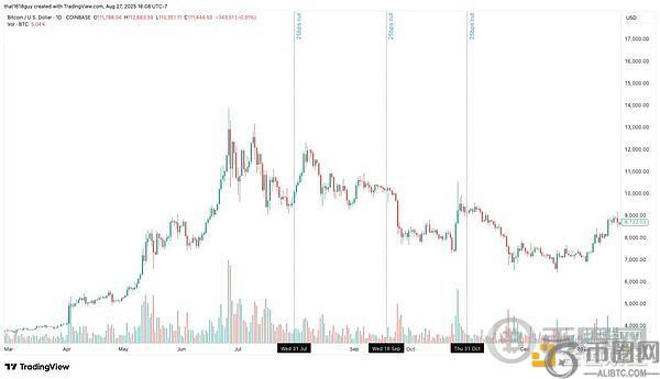 市场普遍预计美联储将在 9 月进行本轮周期的**降息。从历史上看,比特币通常在宽松政策出台前上涨,但在降息落地后回落。然而,这一模式并非总是应验。本文将回顾 2019 年、2020 年和 2024 年的情况,以预判 2025 年 9 月可能出现的走势。