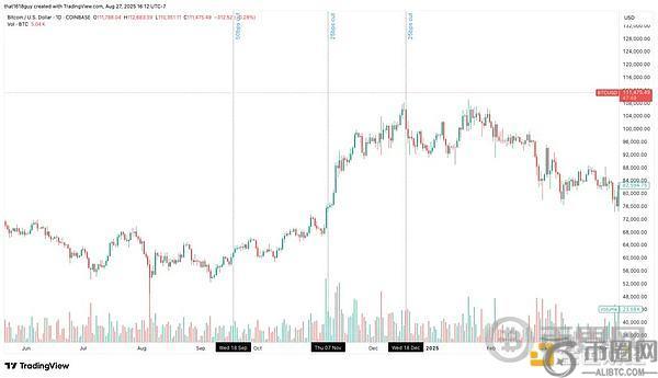 每一次降息决定都标志着比特币的上涨动能接近枯竭。BTC 在议息会议前大幅上涨,但会后随着经济增长**的现实再次显现而遭到抛售。这表明降息的利好已被市场提前消化,而经济增长放缓的现实主导了后续走势。