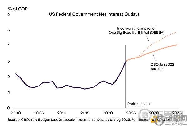 今年 7 月通过的《大漂亮法案》(OBBBA)将在未来 10 年锁定高赤字。除非利率下降,否则这将意味着更高的利息支出,并进一步挤占政府收入的其他用途。因此,白宫一再向美联储施压,要求其**利率,并要求美联储主席鲍威尔辞职。8 月份,随着美联储七人理事会六名现任成员之一丽莎·库克被罢免,这些对美联储独立性的威胁进一步升级。尽管这可能在短期内对民选**有所帮助,但美联储独立性减弱会增加长期高通胀和货币**的风险。