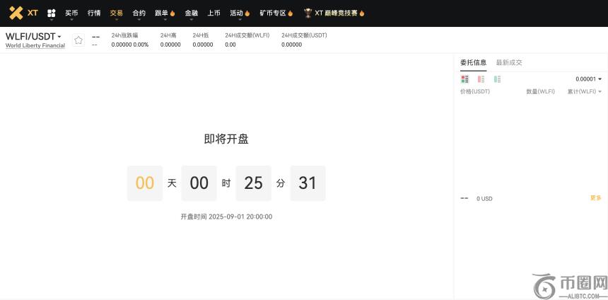提示:XT 将在**时间上线WLFI/USDT 现货交易对,交易者要做好迎接开盘高波动的准备。