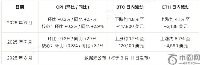 - – CPI(9 月 11 日):虽然核心通胀在下降,但基数效应可能带来意外反弹。历史上 CPI 发布日,BTC经常出现 2–5% 的日内波动,ETH的反应甚至更大。