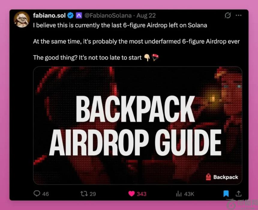 我同意 Fabiano 的观点,即它是「Solana 上**剩下的六位数空投之一」。