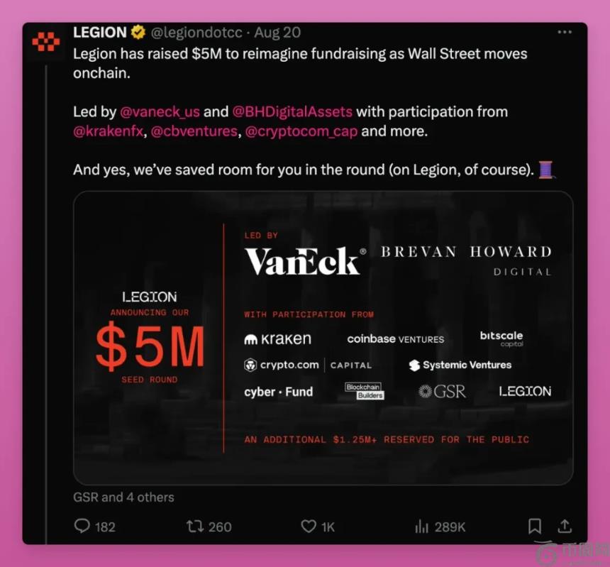 Legion 从知名机构那里筹集了 500 万美元,旨在将初创公司股权、私人信贷和知识产权引入加密市场。