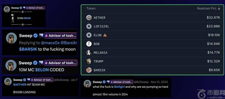 名单曝光后,另一个值得注意的现象是,这些海外KOL的钱包盈利来源往往与其推广的**高度重合。