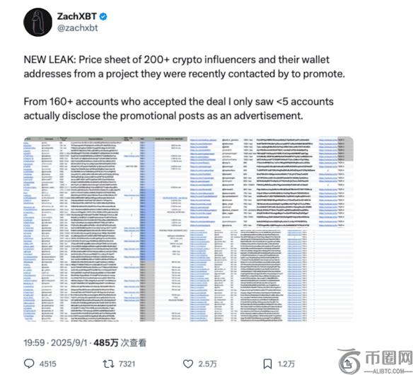 ZachXBT指出,在这份名单中,只有不到5个账号在发布推广内容时标注了“广告”字样。这意味着绝大多数KOL在社交媒体上的公开发帖,用户无法分辨是恰饭文章还是自发分享。