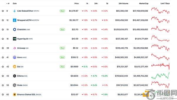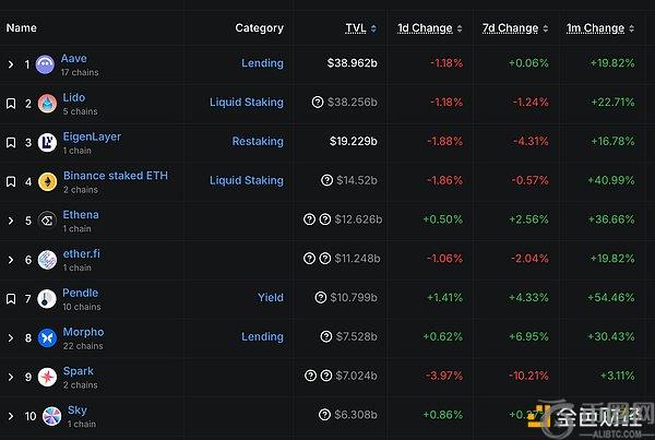 DeFi项目锁定资产前十排名及锁仓量 数据