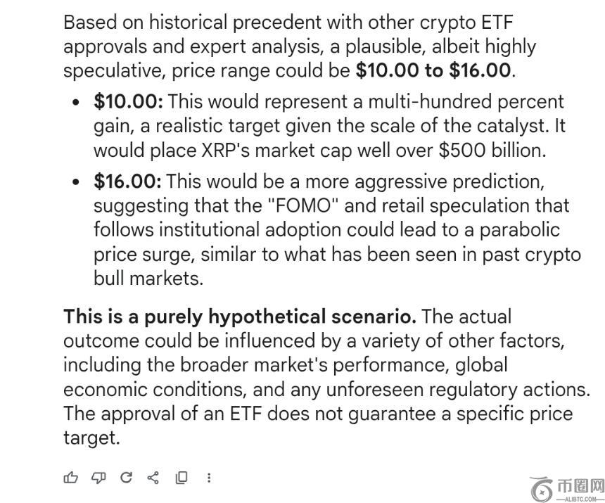 为了评估这一假设,我们请求Google Gemini AI分析:如果所有现货XRP ETF在2025年10月之前获得批准,XRP的价格可能会上涨到什么水平。Gemini回应称,这种情况可能成为XRP市场的转折点。