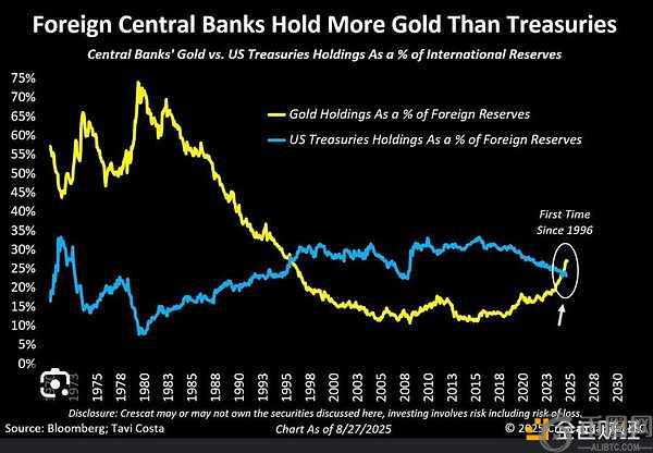有趣的是,世界各国央行也在大量购买黄金,同时减少对美国国债(或法定货币)的持有。他们非常清楚正在发生的事情,并正在对冲这种未来风险。