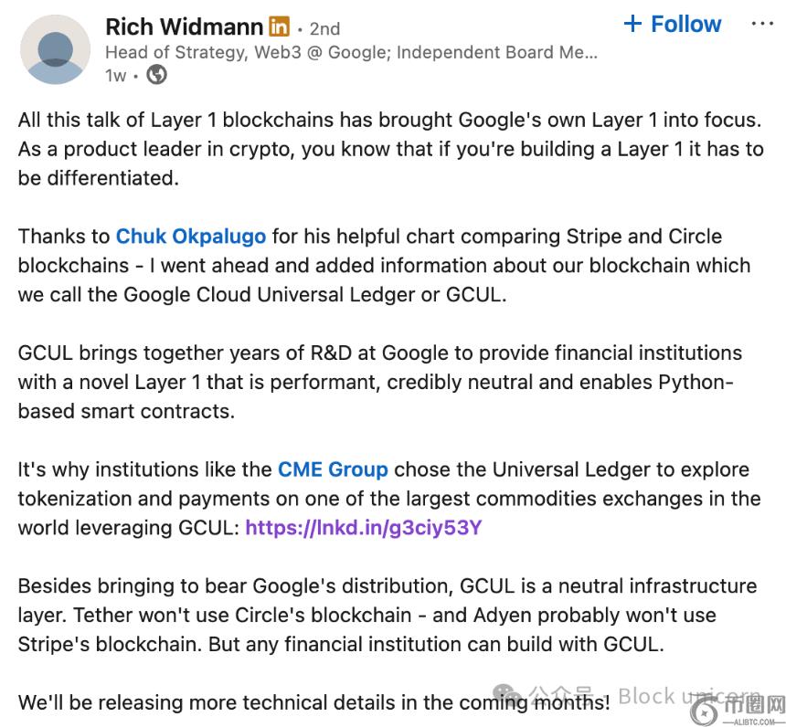 目前,谷歌的 GCUL 仍在测试网上,CME 已经加入,其他合作伙伴也在积极争取。谷歌计划在 2026 年进行更广泛的推广。