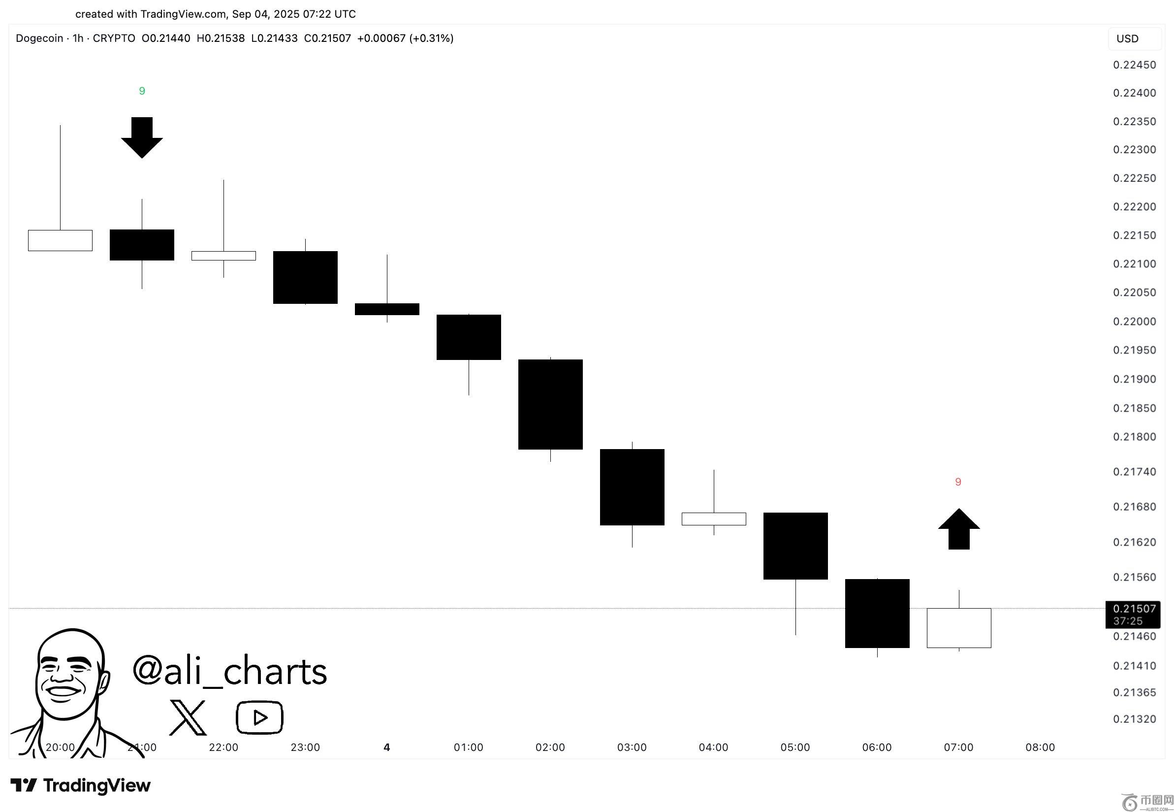 “TD Sequential 已达到**,现在它刚刚闪现出对狗狗币的买入信号。”