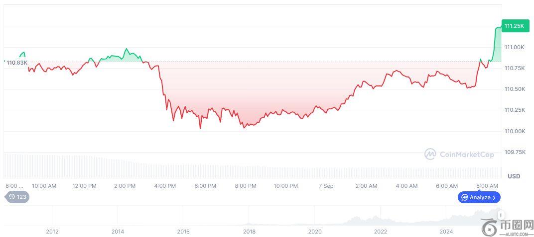 根据 CoinMarketCap,比特币(BTC)交易价格为110,845.03美元,市值为2.21万亿美元。BTC价格在24小时内波动了0.27%,90天波动率为1.28%,凸显了近期影响全球加密货币流动的政策所带来的波动性。