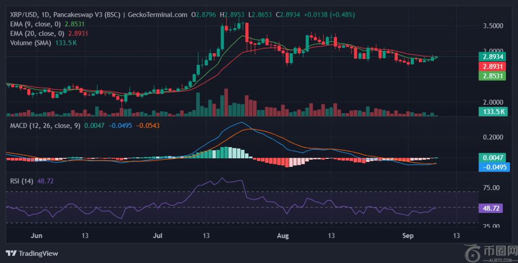 十RP 已逐渐攀登过去几个交易日,该价格一直保持在 2.87 美元以上,但势头依然**。