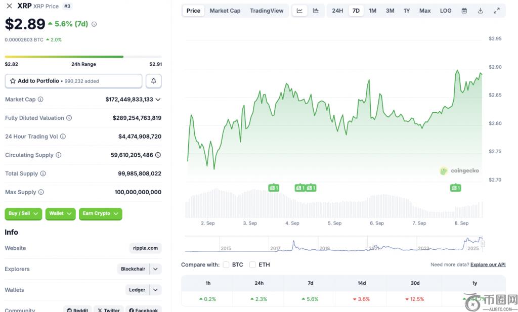Ripple 的 XRP **似乎在 2.90 美元的价格水平上面临一些阻力。CoinGecko 数据显示,XRP 在过去 24 小时内上涨了 2.3%较前一周上涨了5.6%。然而,该资产在14日线图上经历了3.6%的回调,在过去一个月中经历了12.5%的回调。在这篇价格预测文章中,我们将讨论XRP如果突破2.90美元的阻力位,其收复3.50美元价位的可能性。