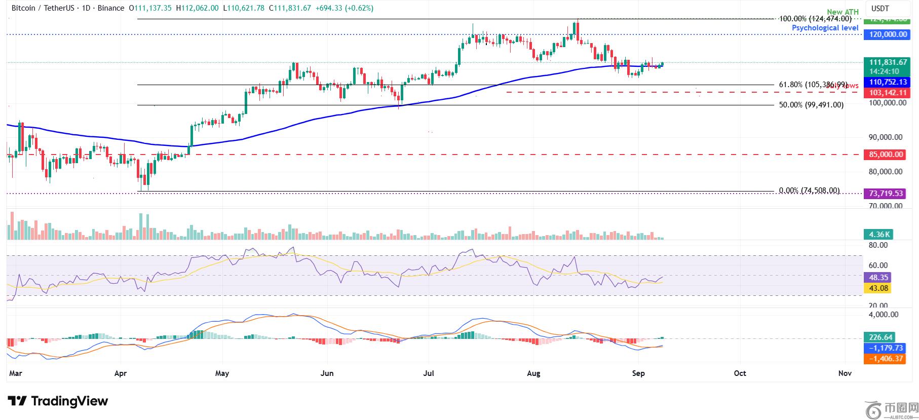 文章标题:比特币价格预测:随着美联储降息乐观情绪和企业新一轮买盘提振市场情绪,BTC 将回升至 111,500 美元以上