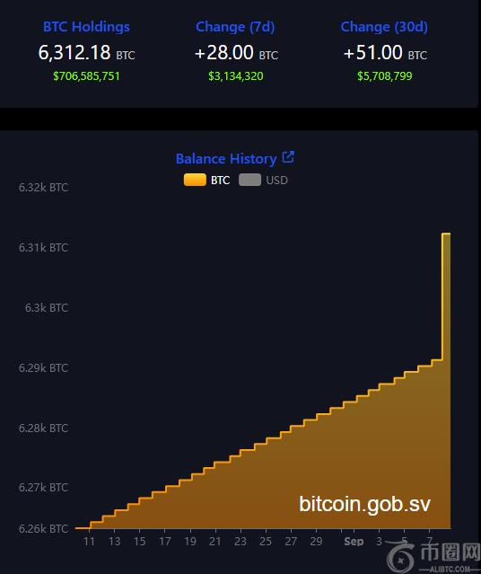 该国目前总共持有约 6,313 BTC,按当前市场价格计算价值约为 7.0658 亿美元,如下图所示。