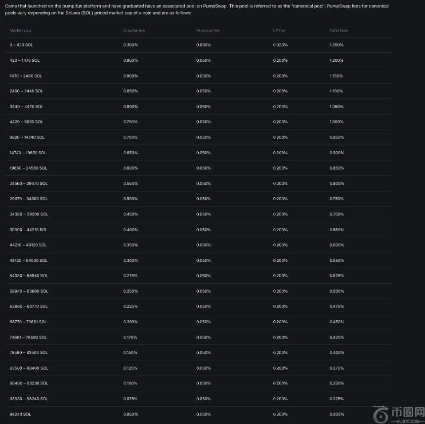PumpSwap 不同市值**对应的手续费和内容创作者收益