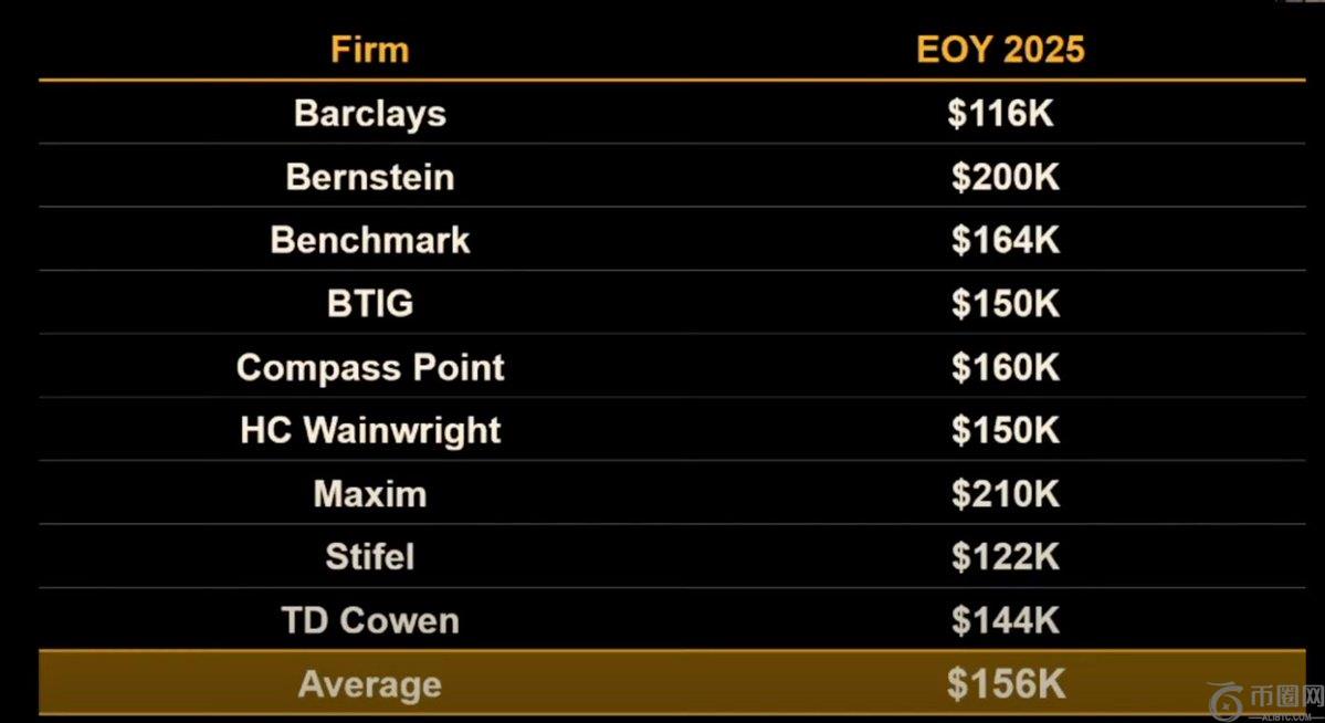 在中间区间,几家公司的估值集中在15万至16.5万美元左右。BTIG和HC Wainwright均预测15万美元,而Compass Point则预计16万美元。Benchmark的目标价略高,为16.4万美元。这些预测暗示着稳定但可控的增长,可能受到机构资金流入和ETF采用的支撑。