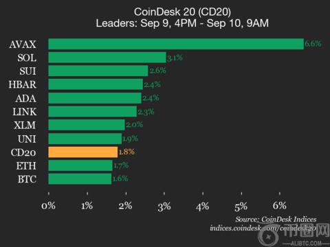 文章标题:CoinDesk 20 业绩更新:Avalanche(AVAX)指数上涨,上涨 6.6%