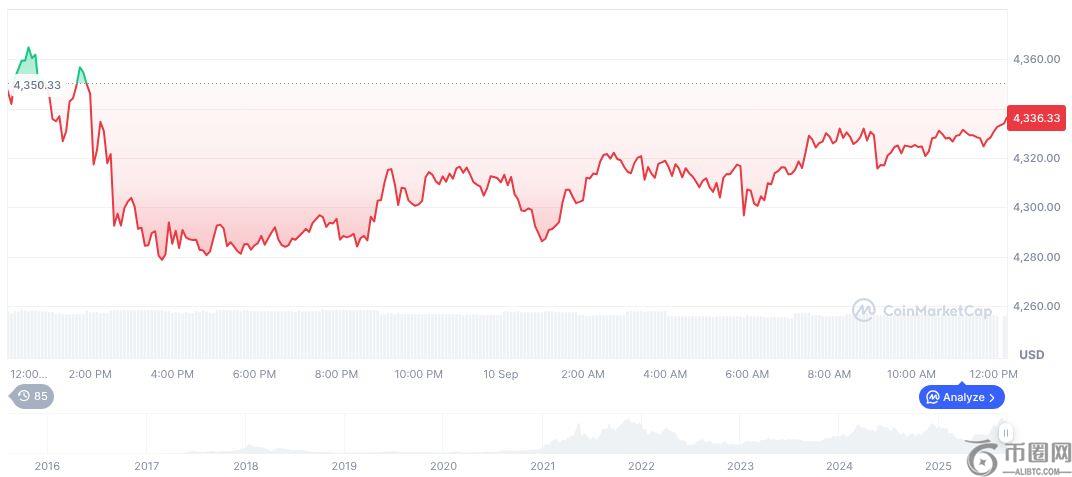 以太坊 (ETH) 日线图,CoinMarketCap 截图,UTC 时间 2025 年 9 月 10 日 15:42。