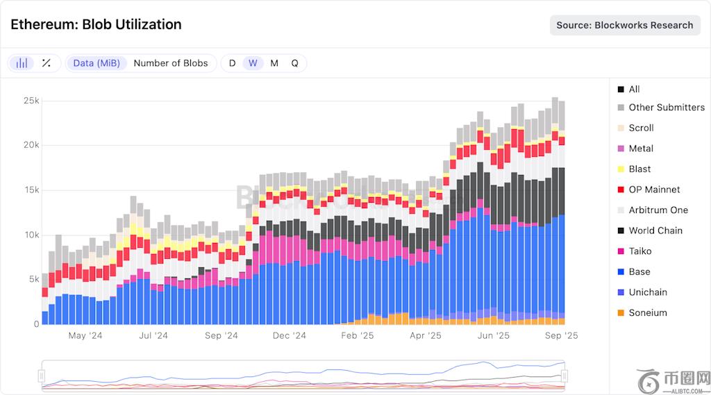 6.Blob利用率:创历史新高。Dencun 推出了 Blob,而 Pectra 则让 L2 的价格便宜了很多汇总. 优链 和 根据**,OP, 仲裁, 世界链, 太鼓贡献。汇总数据需求目前仍是增长引擎。