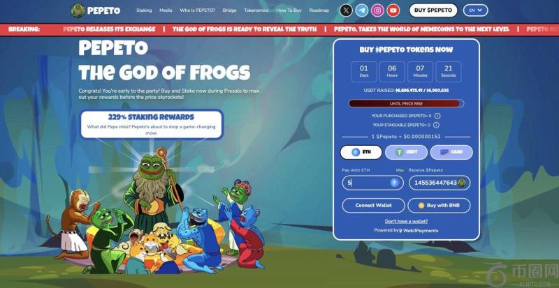 文章标题:基于以太坊的 Memecoin Pepeto 交易所演示版上线,预售金额突破 660 万美元
