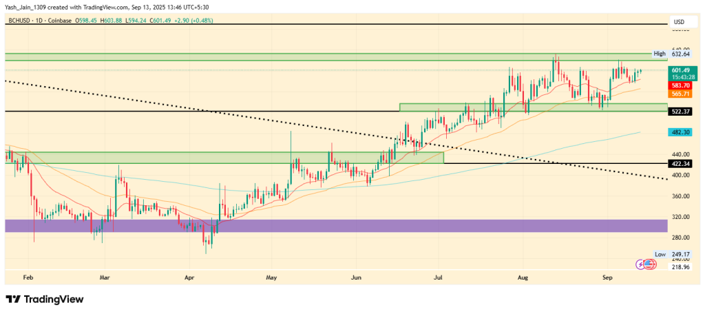 我们预计,在即将到来的山寨币季节,BCH 价格将创下 2025 年新高 701 美元。