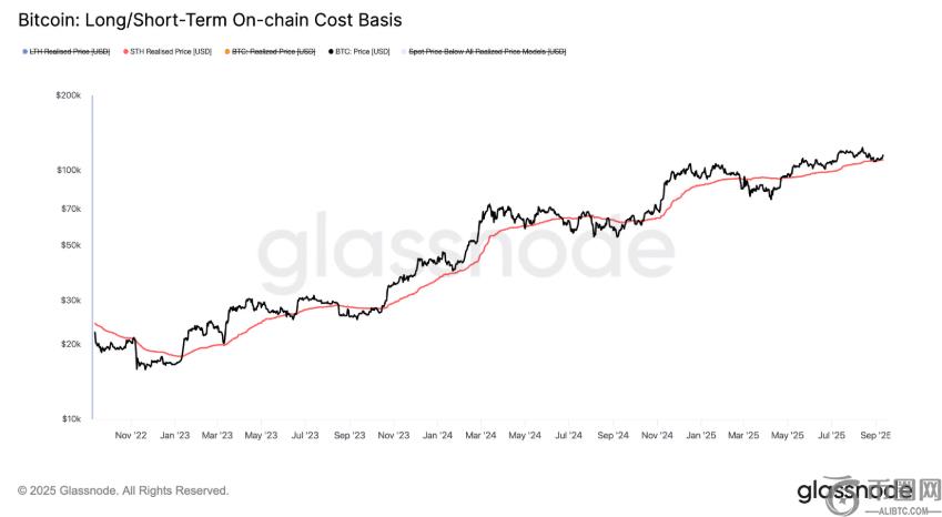 具体来说,就比特币而言,技术面依然看涨。自9月份触及107,500美元的低点以来,比特币价格已形成更高的低点,而200日移动平均线则在102,000美元左右上涨。另一个关键指标——短期持有者实际价格——通常是可靠的牛市支撑位——已攀升至109,000美元以上的创纪录水平。