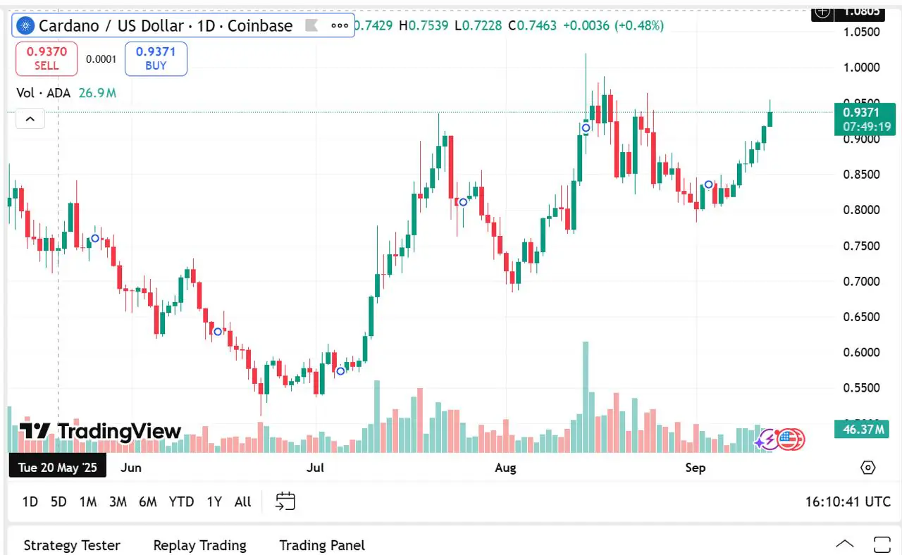 卡尔达诺目前价格为 0.9370 美元,过去 24 小时内上涨了 5%。它市值