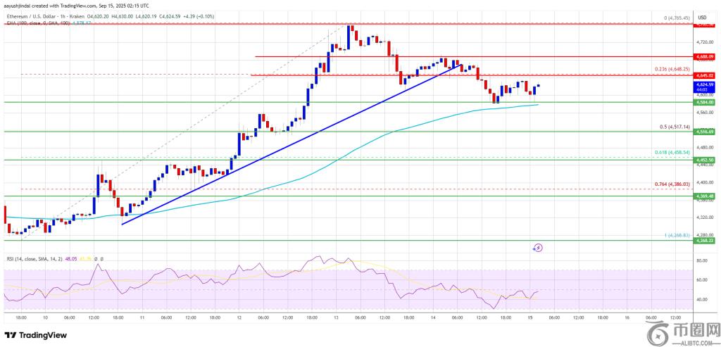 以太坊价格开启新一轮上涨,并突破 4,700 美元。目前,ETH 正在修正涨幅,若突破 4,685 美元,则有望再次上涨。