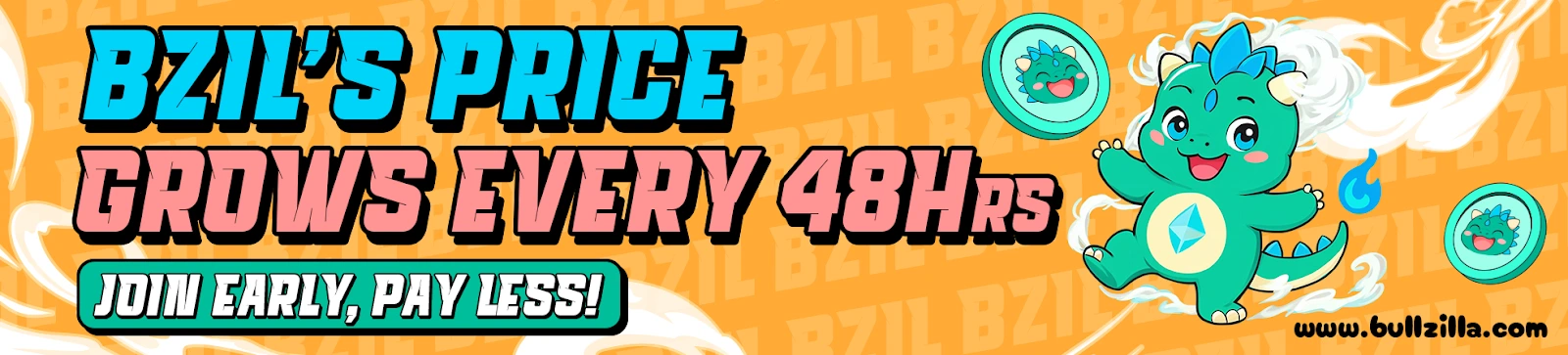 这个名字是BullZilla($BZIL)。预售火爆进行中,分析师称其为**模因币预售之一,回报率高达 1000 倍。这款**设计了稀缺触发机制、自动提价机制和充满神话色彩的故事情节,刻不容缓。随着发行在即,早期投资者已获得两位数甚至三位数的账面收益,时间紧迫。对于那些曾经怀念柴犬的人来说,这次预售或许是一次重温的机会。