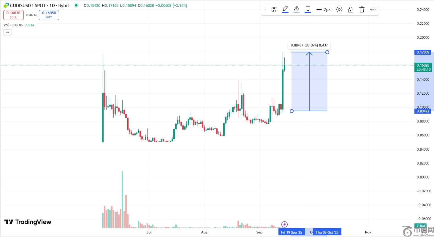 CUDIS 加密货币在 24 小时内**近 60%,在 Coinbase 新上市后攀升至 0.179 美元,引发了大量零售和机构需求。