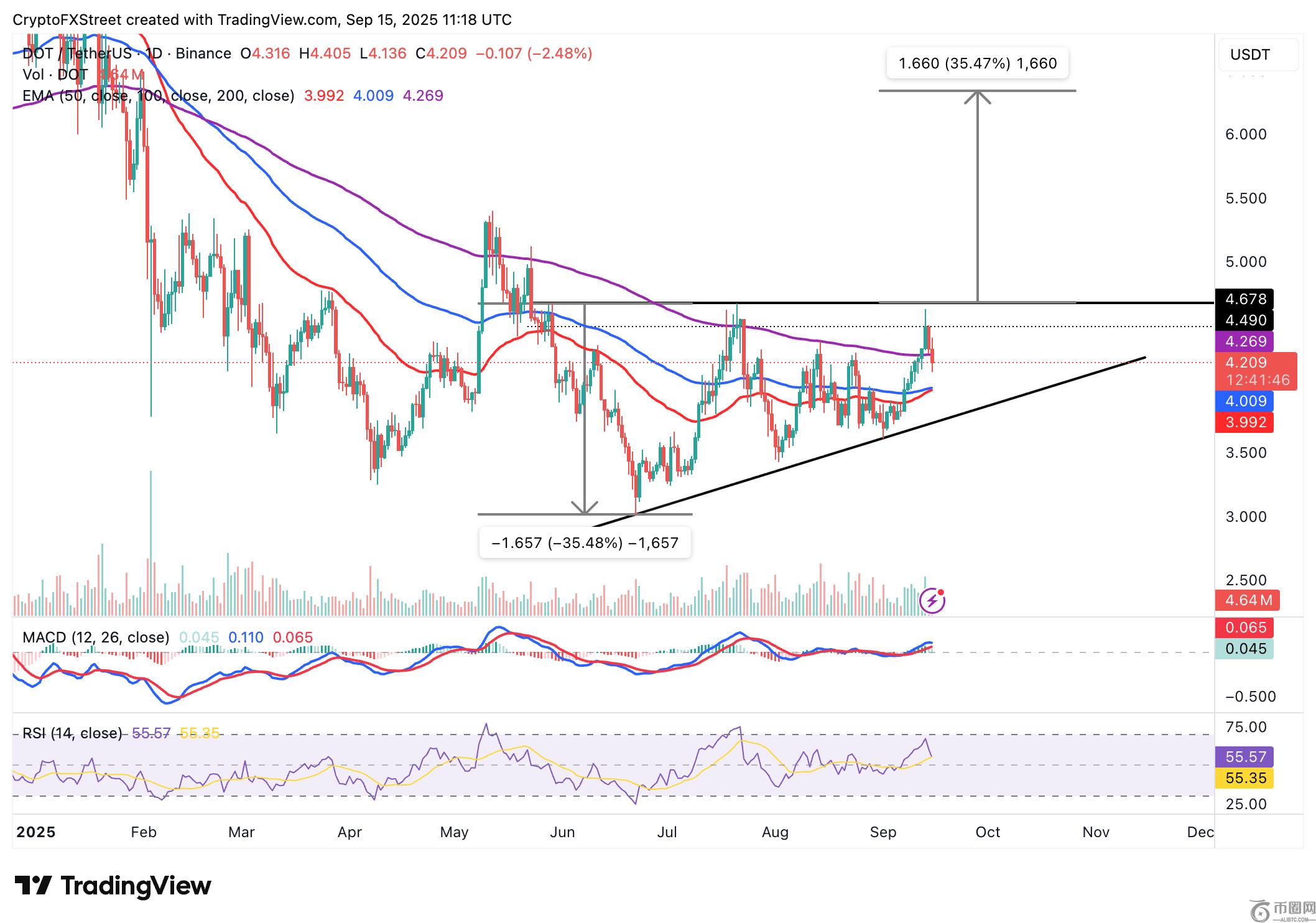 文章标题:Polkadot 价格预测:由于网络供应受限,DOT 有望突破 35% 的三角形