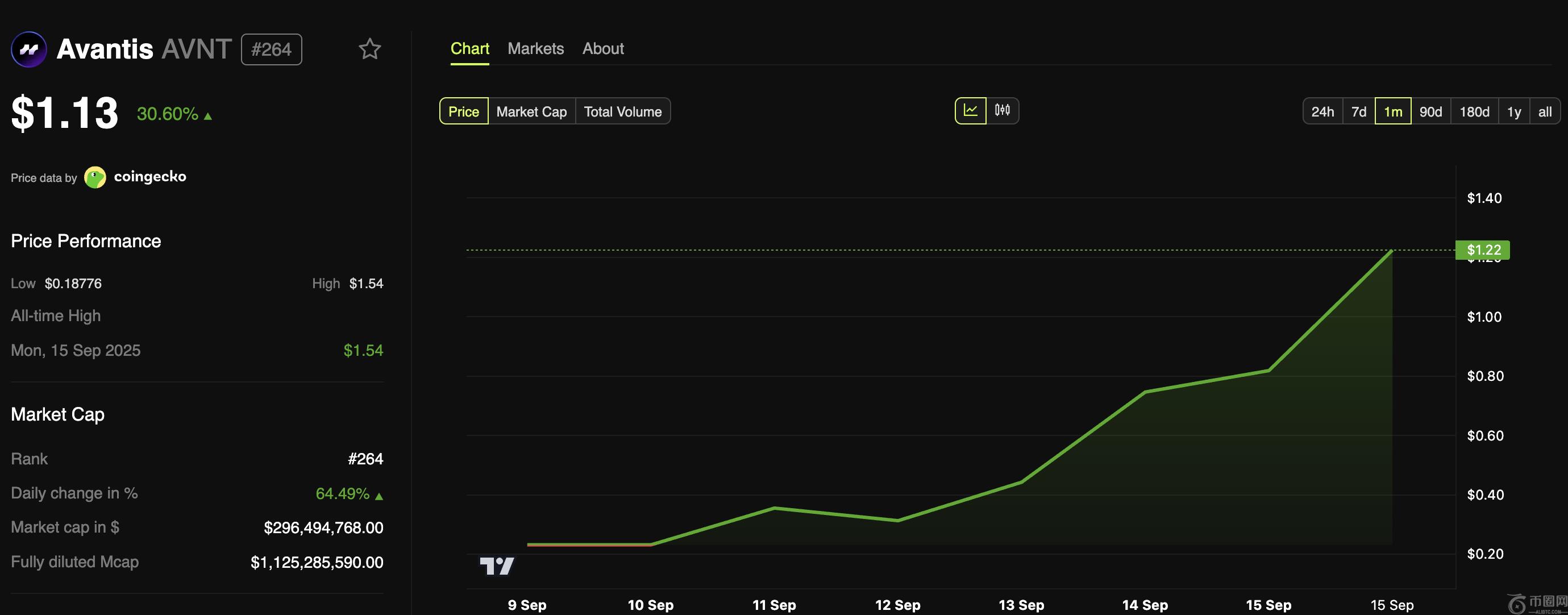 BeInCrypto市场 数据显示,该**在过去 24 小时内上涨了 30.6%。截至本文撰写时,AVNT 的交易价格为 1.13 美元。此外,其市值也从约 1.8 亿美元上涨至 2.965 亿美元。