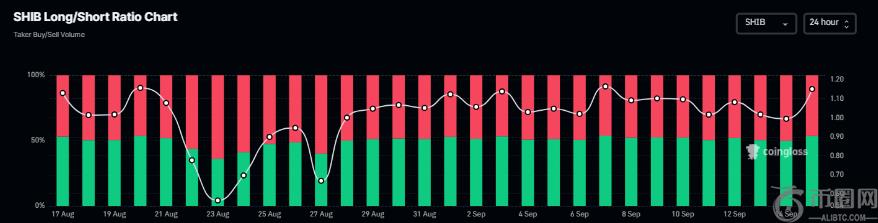 SHIB 多空比率图表显示近期看涨仓位趋势 - 资料