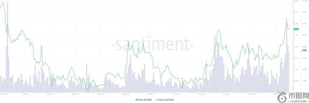 狗狗币价格与交易量相关性显示近期交易活跃度[激增] –