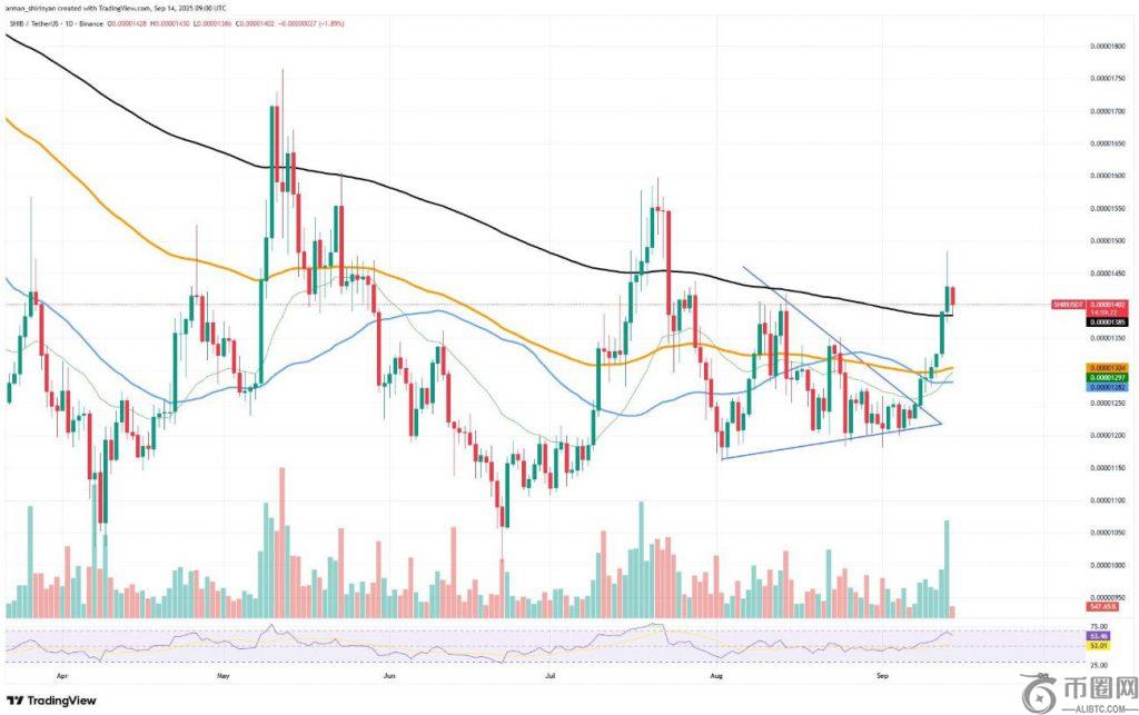 SHIB 技术分析图表显示近期价格走势,包括移动平均线和支撑位 - 资料