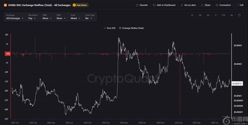 这 柴犬网络流量崩溃事实上,这代表了SHIB近几个月来最重要的链上发展之一。当**从交易所转移时,交易所净流通常会支撑价格稳定,但这种突然的逆转目前被交易员解读为看跌信号。