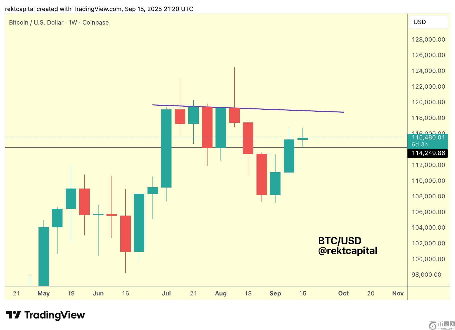 但就目前而言,他认为比特币在获得 114,000 美元的支撑位后,正在准备迎接新的反弹。