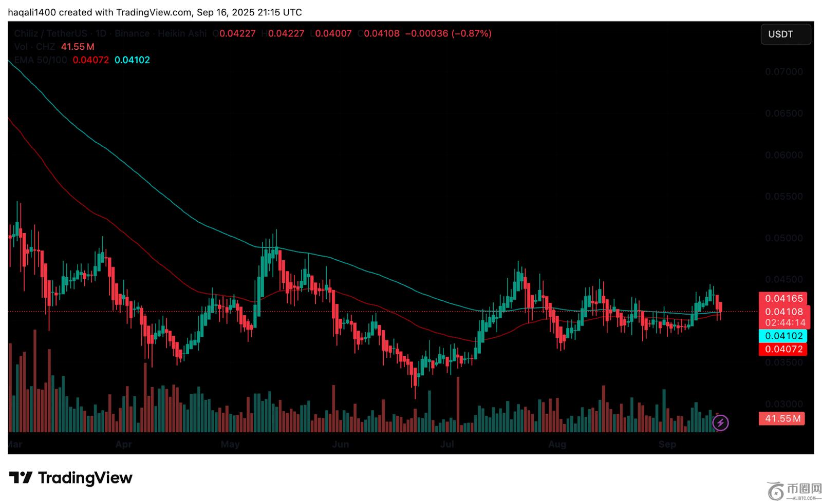 在撰写本文时,CHZ 交易价约为 0.0417 美元,日交易量接近 3900 万美元。