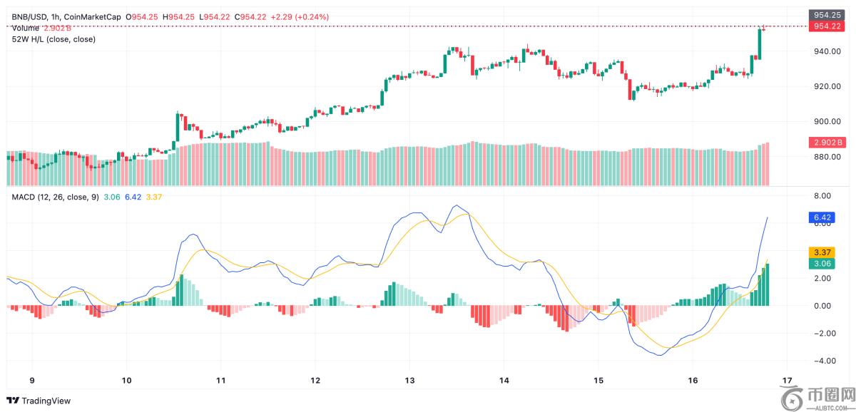 BNB 飙升,MACD 显示强劲看涨势头。资料